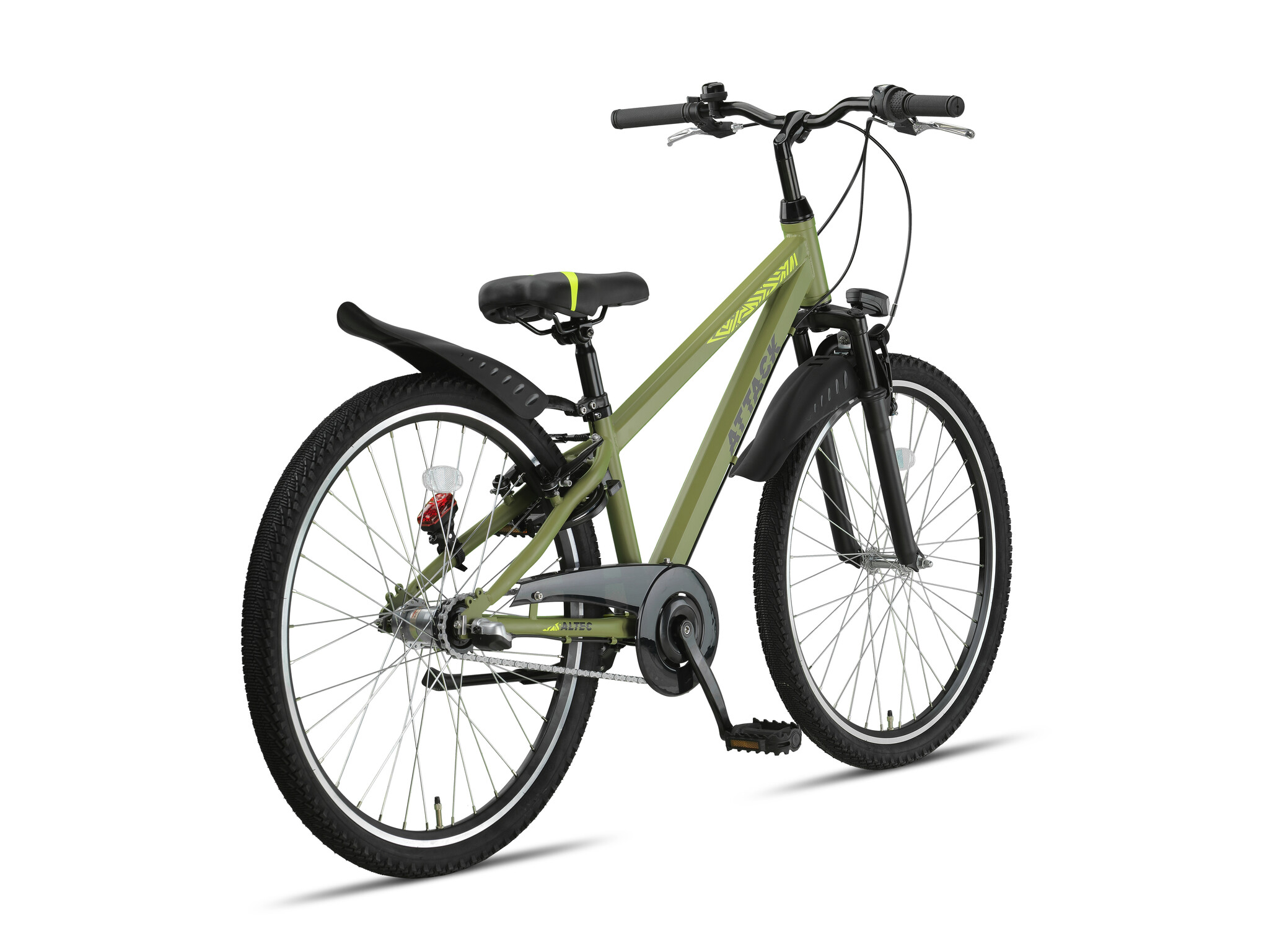 Opvallen doe je zeker met de Altec Attack. Deze multifunctionele jongensfiets kan gebruikt worden voor de dagelijkse ritjes, maar kan ook gebruikt worden om lekker te crossen. De Altec Attack heeft niet alleen een stoer uiterlijk maar ook nog eens hele handige specificaties! Het frame is vervaardigd uit staal. Dit maakt deze stoere mountainbike erg stevig. Ondanks dat deze fiets tegen een stootje kan, wil je dit natuurlijk voorkomen. Daarom beschikt deze stoere mountainbike over veilige V-brake remmen. Deze zitten zowel voor als achter. Geen heuvel is te steil en de langere routes zijn appeltje eitje met de Shimano Nexus 3 versnellingen. Schakel eenvoudig naar een trapzwaarte die voor jou comfortabel voelt. Ga je een middagje crossen? Geen probleem! De luxe vervende voorvork vangt de schokken goed op. Toch raden wij voor de veiligheid een extra kabel of kettingslot aan.