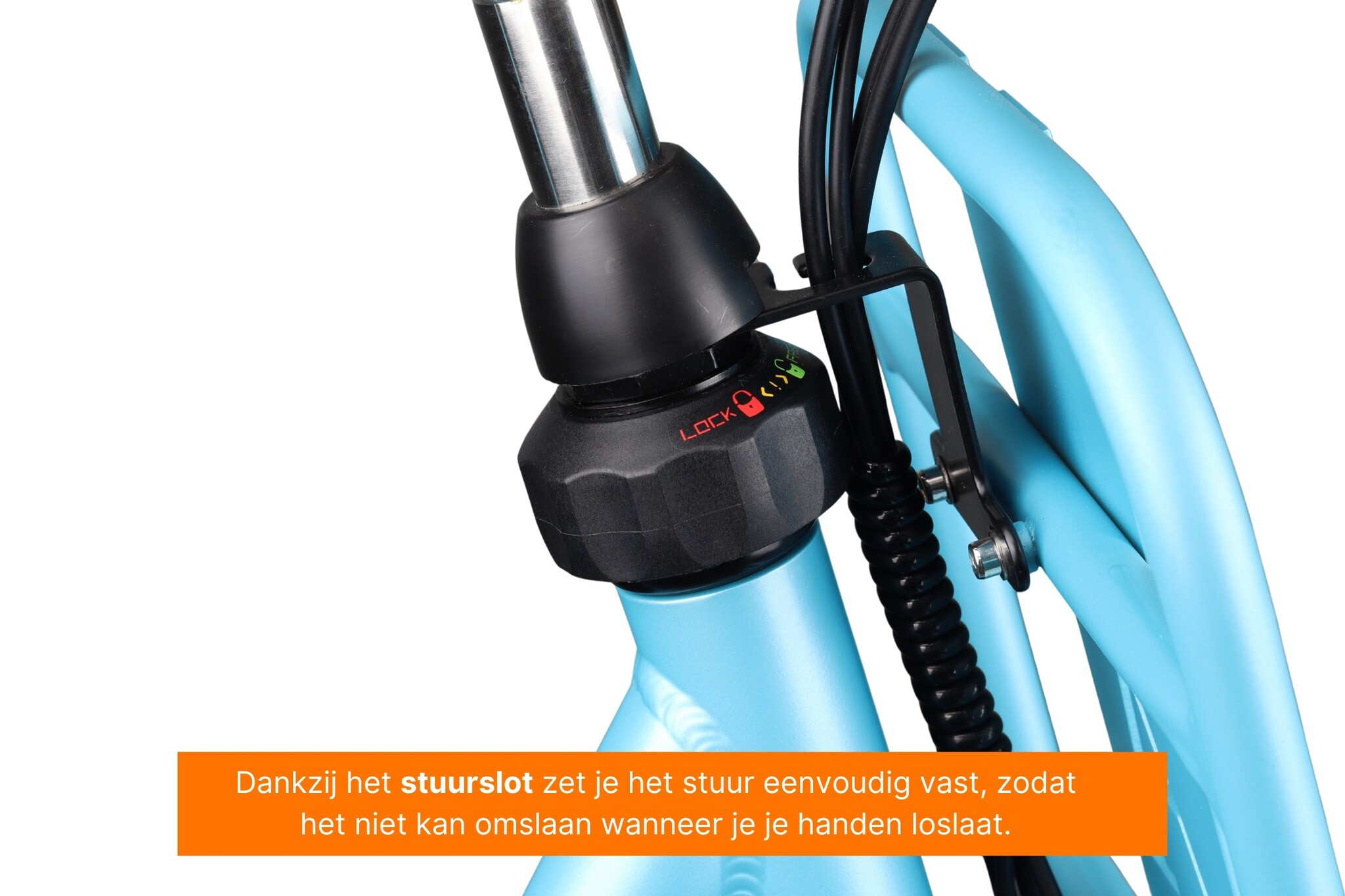 Hiermee zet je het stuur vast wanneer de fiets geparkeerd is. Vaak te vinden op transport- en moederfietsen. Een stuurstabilisator is een springveer die het stuur automatisch recht houdt als de fiets stil staat.