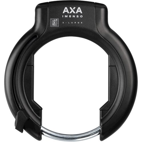 De AXA Imenso X-Large is een hoogwaardig frameslot met een innovatief design door de mogelijkheid een UPI plug-in kabel of ULC plug-in ketting in de zijkant van het slot te steken en zo uw fiets aan een vast object te verbinden. Het ringslot heeft een ART 2 sterren goedkeur, hiermee voldoet het slot aan de eisen om een fietsverzekering af te sluiten. een extra brede opening van 92 mm zodat deze ook past bij brede spatborden of ballonbanden.