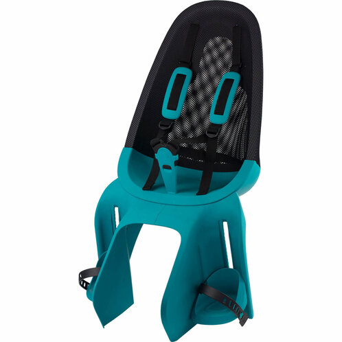 De rugleuning is bespannen met mesh, een slijtvast en ventilerend materiaal. Deze stof wordt ook gebruikt in rugzakken en bureaustoelen. Ergonomisch verantwoord en superlicht: het zitje weegt slechts 2,5 kilogram.