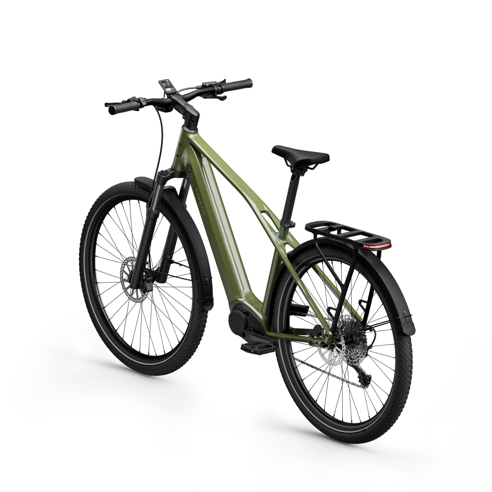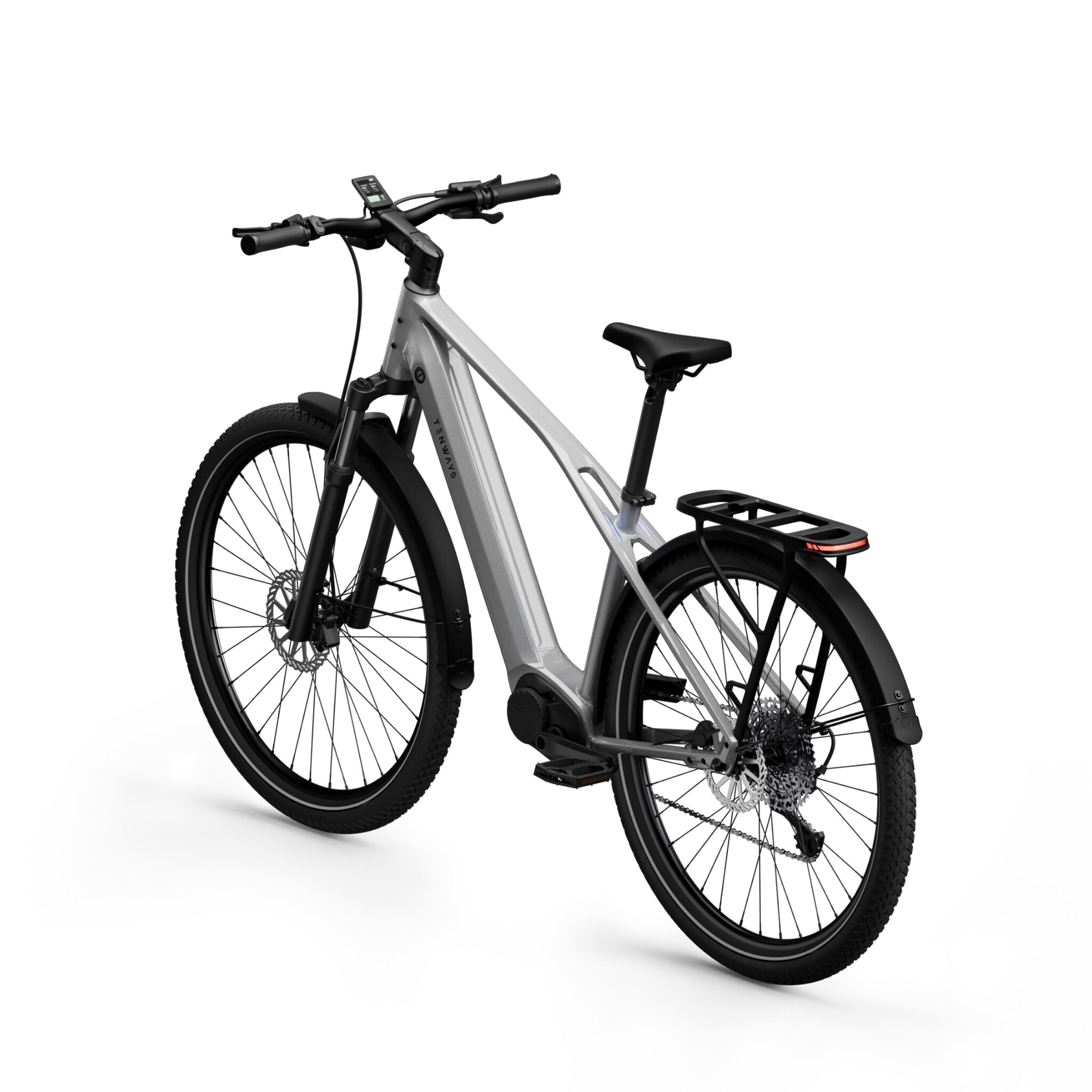 De Tenways e-bike is uitgerust met een krachtige motor die zich in het midden van het frame bevindt. Dit zorgt voor een perfecte balans en stabiliteit, en geeft je het gevoel dat je zweeft over de weg. De elektrische ondersteuning is naadloos geïntegreerd met je eigen inspanning, waardoor je moeiteloos lange afstanden kunt afleggen en zelfs steile hellingen kunt bedwingen.