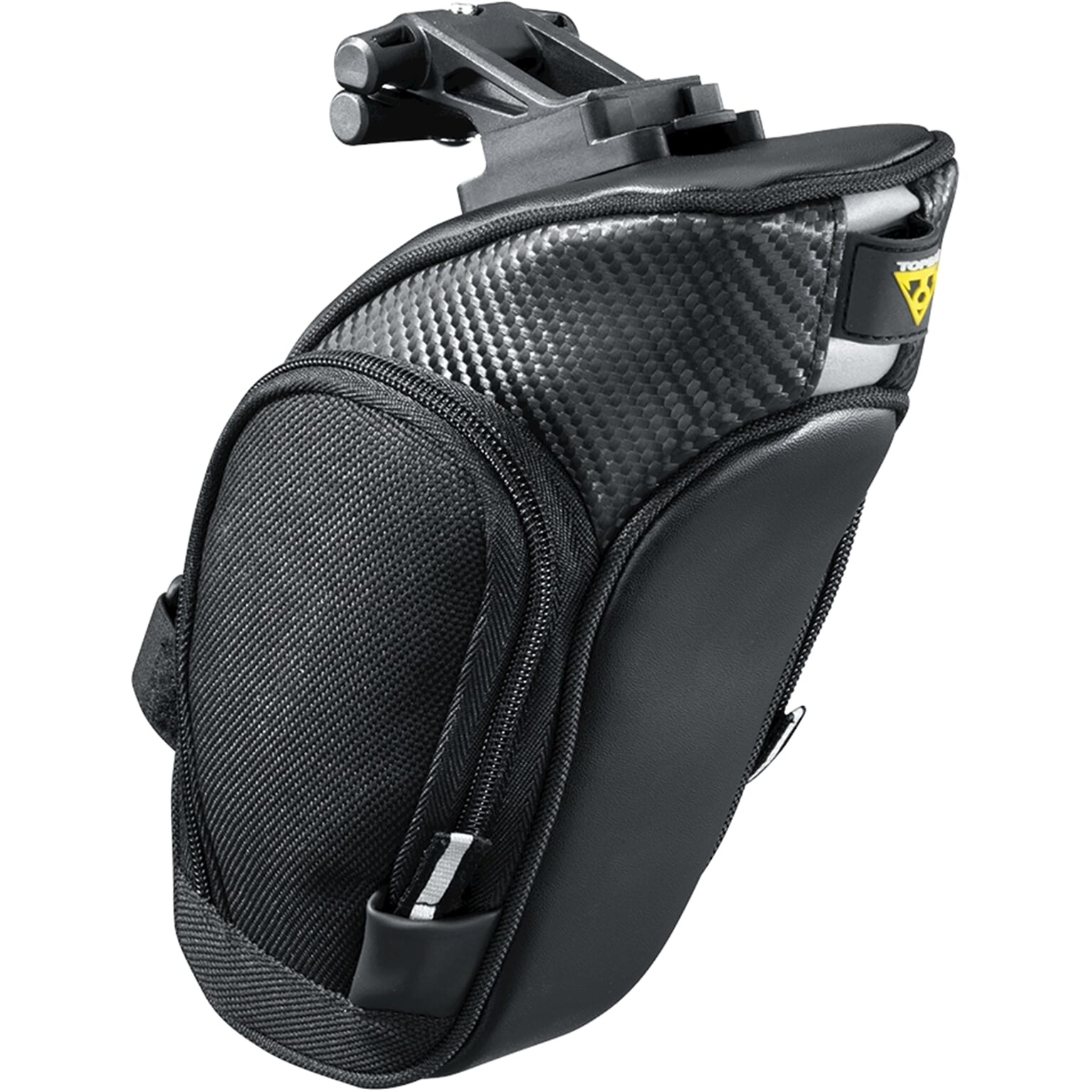 Topeak zadeltas MondoPack, Het kleinste broertje in de MondoPack-serie is ontworpen voor kleinere framematen of voor fietsers die een lagere zadelpenpositie gebruiken. Twee zijpanelen die openen bieden gemakkelijke toegang tot al je spullen en zijn voorzien van binnenzakken van mesh om items zoals sleutels en klein gereedschap op hun plaats te houden tijdens het rijden.