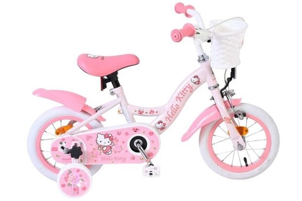 Met de Hello Kitty 12 inch kinderfiets in lichtroze wordt leren fietsen een feestje. Deze vrolijke fiets is ontworpen om jonge fietsers een veilige en comfortabele start te geven, met een stabiele en kindvriendelijke opbouw.